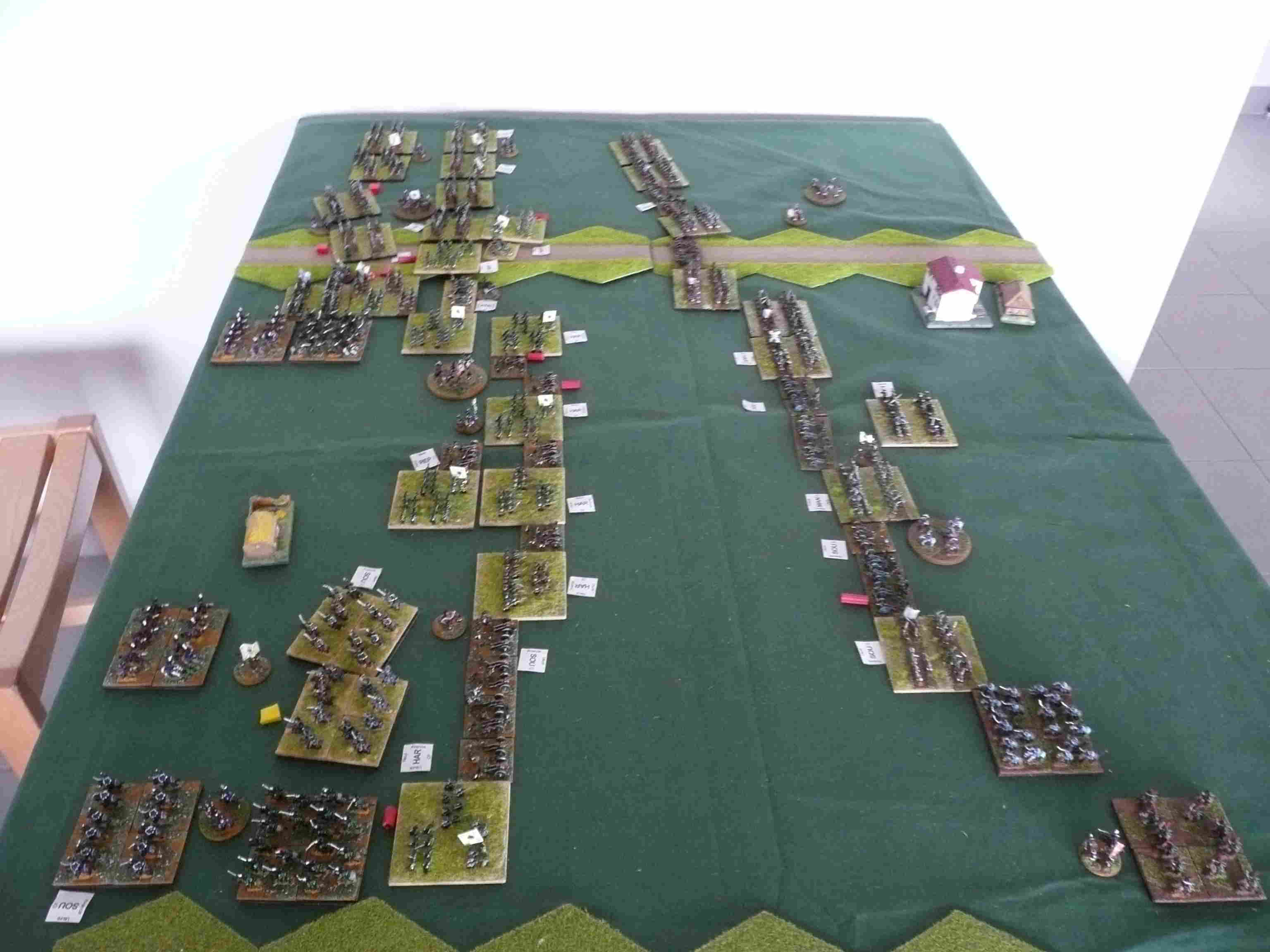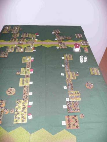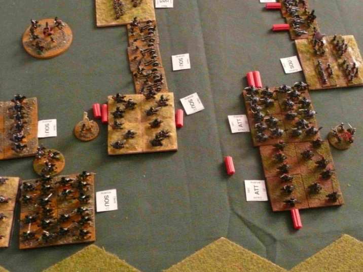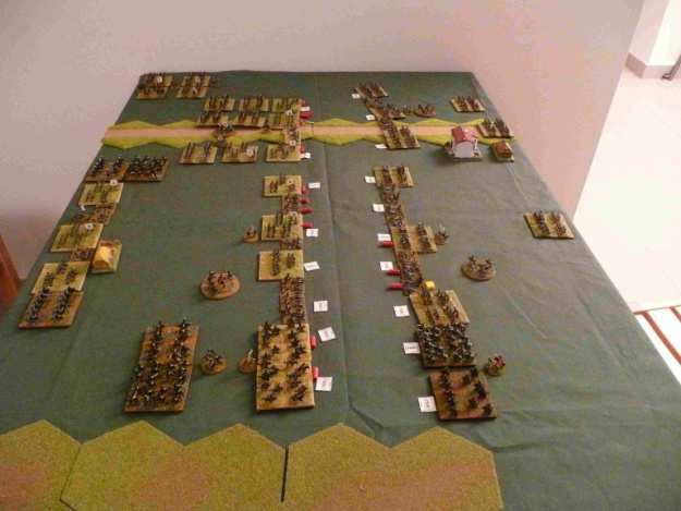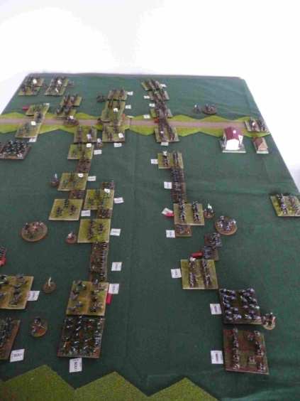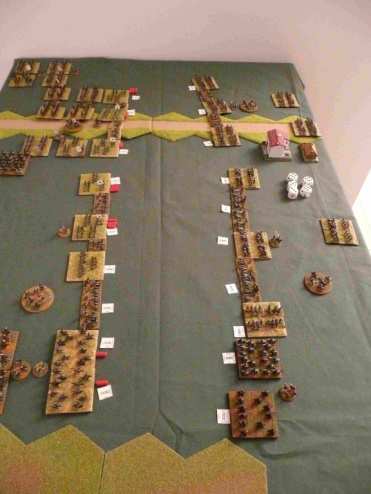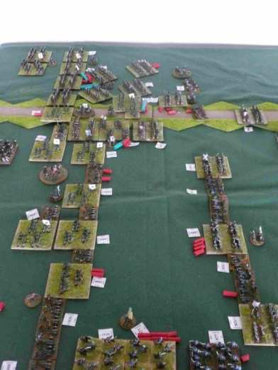 Les polonais survoltés engagent les brigades russes. La division Lewis, sous pression, ne résiste pas à l’engagement des polonais. Deux brigades cassent et partent en déroute. La brigade prussienne qui attaque au centre, enfonce la brigade de chasseurs russes. Du coté de la cavalerie, Les hussards prussien l’emporte légèrement sur les hussards russes, pendant que les dragons font match nuls.